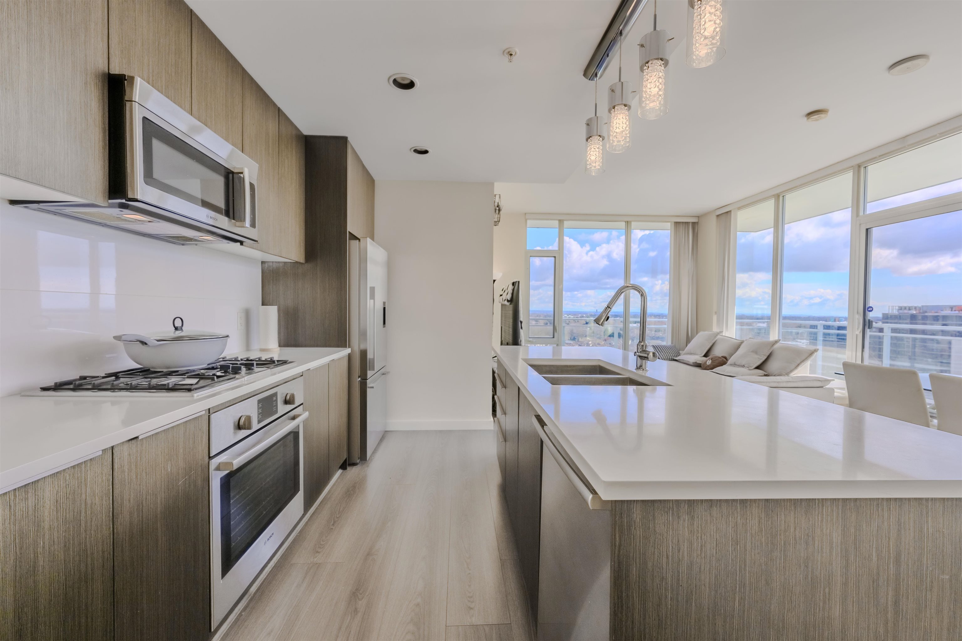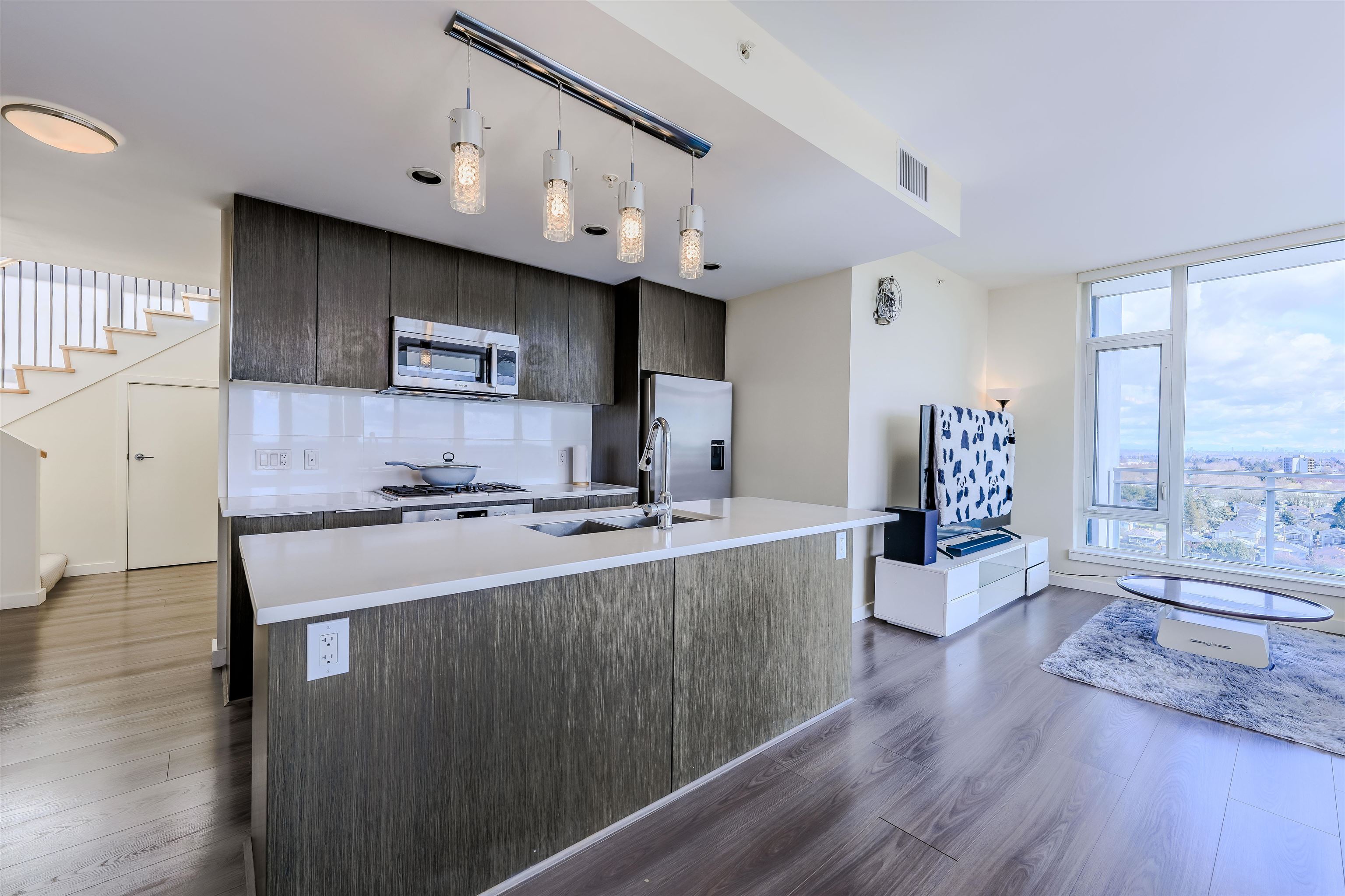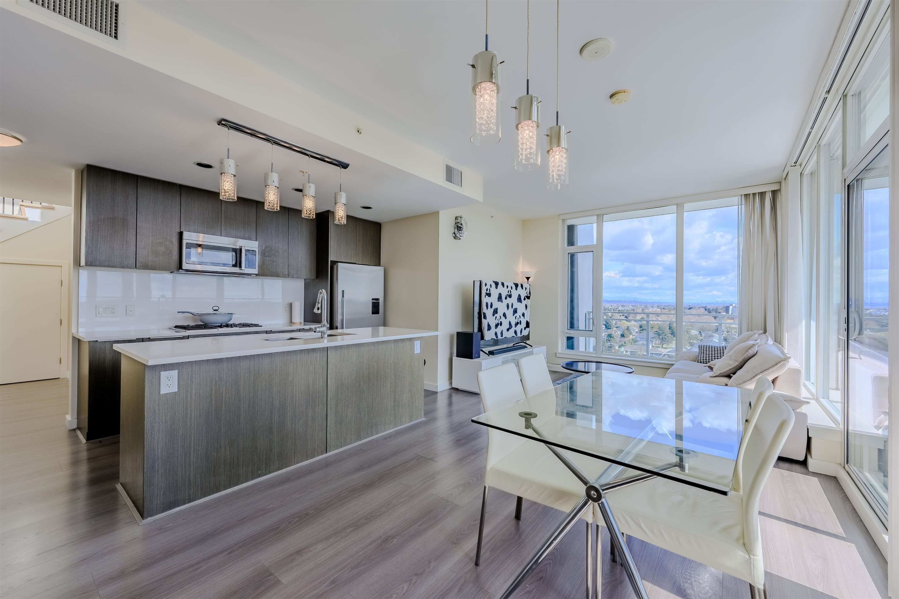 True hidden gem rarely available on market to own this exclusive PENTHOUSE at Capstan Village by Pinnacle! This South-Easting facing penthouse home feature 1164 sqft of modern living area with 3 spacious bedrooms, 2 bathrooms, and double parking stalls next to elevator. Two private outdoor spaces: a 280 sqft wraparound balcony off the living room plus a spectacular 560 sqft rooftop terrace with unobstructed views of north shore mountains, ocean and fast-growing cities, perfect for entertaining or relaxing. ...