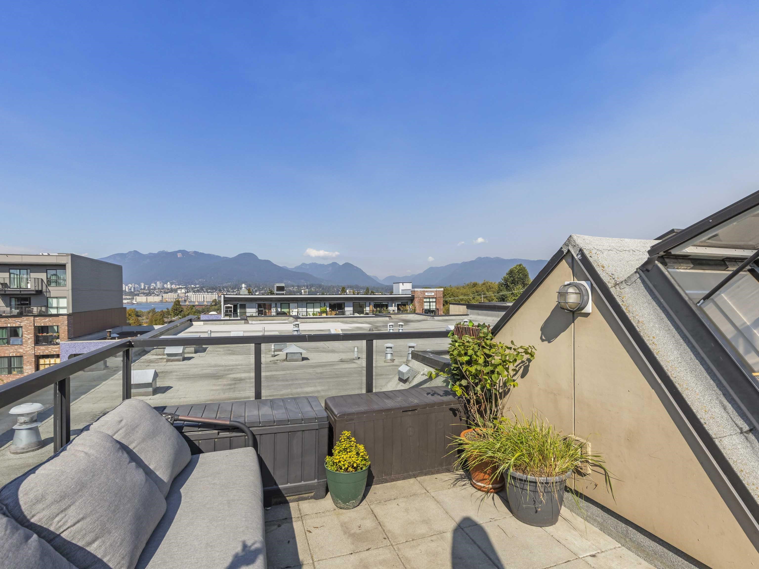 BRIGHT SOUTH WEST CORNER RARE PENTHOUSE #20 + Private 202sqft rooftop deck & 360° water, city & mountain views on the QUIET back side of building. 1 bed, 1 bath, 2 outdoor living spaces, stylish East Van living - feels like home and not a condo! The showpiece is a 202 sqft PRIVATE rooftop deck with 360° views of water, city & mountains & sunsets plus a 2nd balcony for morning coffee gives you 250+ sq.ft. of outdoor living. Inside, bright open-plan living flows into a modern kitchen with stainless steel app...