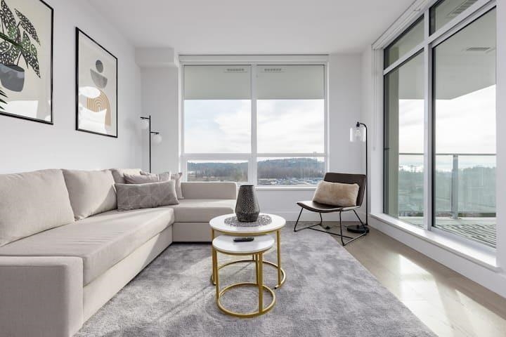 Park West-1632 LionsGate Lane. Welcome to this gorgeous south facing 1 bed 1 bath on the foot of North Shore mountains for your year round adventure and outdoor activities. This remarkable suite boasts stunning views of the Lions Gate Bridge, Skylines of DT and to the Gulf Islands. Watch the sunrise or sunset on your balcony with your favorite drinks to start your day or to unwind after a long day. The modern kitchen and living room showcases sleek engineered hardwood floors with high end appliances (Miele)...